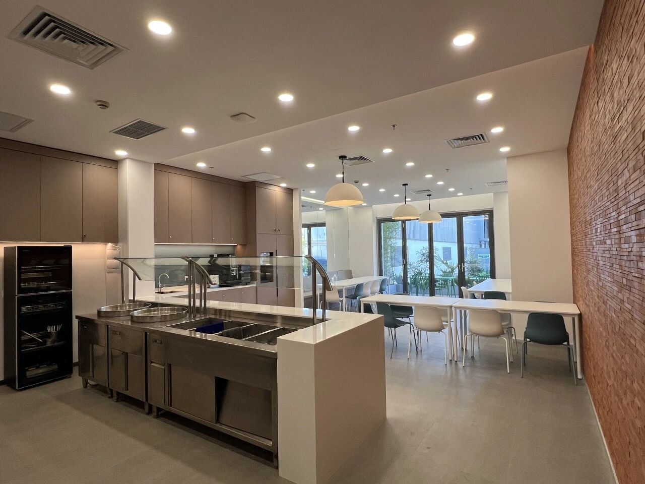 我们深信,卓越的工作体验源于对细节的关注。全新升级的员工餐厅,以简约现代的设计构筑了一个舒适、明亮的用餐与交流空间。特别设置的户外露台区域,为团队成员在忙碌之余,提供了休憩思绪、激发灵感的多元化场所。此举旨在进一步关怀员工福祉,促进内部沟通与协作。