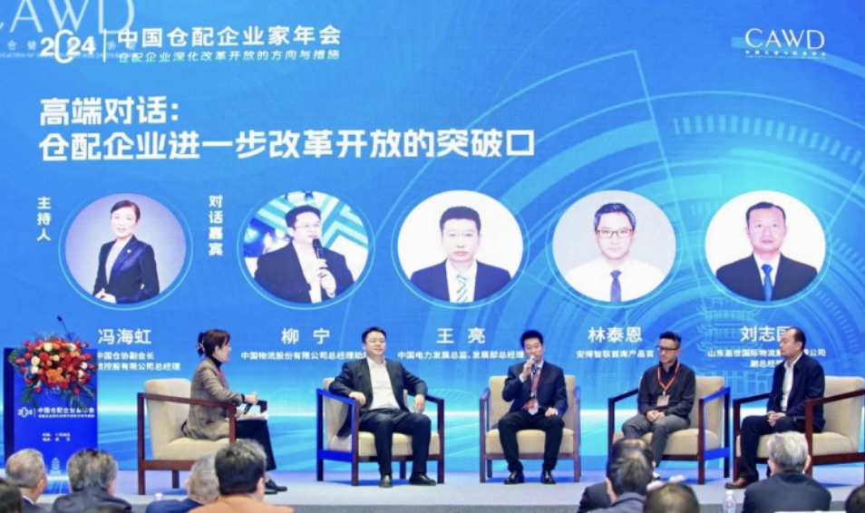 在中国仓储与配送协会副会长、宝湾物流控股有限公司总经理冯海虹主持的“仓配企业进一步改革开放的突破口”高端对话中,中国物流股份有限公司总经理助理柳宁、中国电力发展总监、发展部总经理王亮、安得智联首席产品官林泰恩、山东盖世国际物流集团有限公司副总经理刘志国针对对话主题分别介绍了各自企业的实践,从行业未来发展趋势、未来该如何践行ESG、如何助力出海、如何提升数字化水平等层面深刻探讨仓配企业的挑战与机遇。关于助力出海,柳宁提出物流企业应该做好服务与保障等陪伴服务;林泰恩认为应做好产业长短链协同。关于提升数字化,王亮指出数字化的底座是能源,而能源数字化将为仓配企业带来新的价值产生;刘志国表示数字化依旧还有很长的路要走,当单一业务向系统管理迈进中,数字化会面临更多因素的影响。
